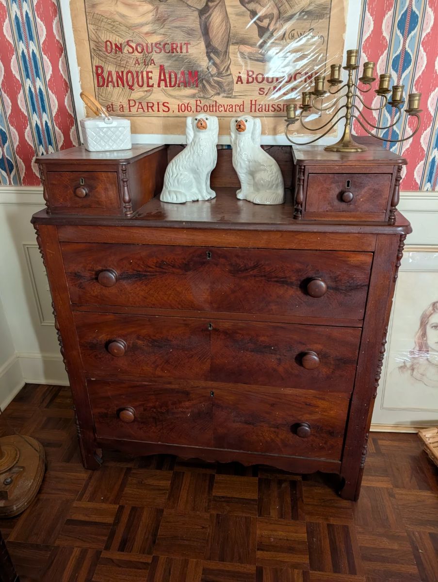 3205 South O Street Ft. Smith, Ar. Antiques and unusual vintage pieces were left in this great old house Of a known family. Furniture, decor and more! Vintage and contemporary clothing, first and accessories. Books upon books in the library including many Ft Smith ones and antique ones. Dressers and chests, demilune server, tables, lamps, side chairs, dining chairs, desks, amazing old harvest farm table, original old artwork, antique sampler, appliances, dishes, pots and pans, kitchen misc., barware, electronics, John Bell Jr double signed print with COA, rugs, Staffordshire dogs, brass items, large transferware platters, large group of 78 record's,...