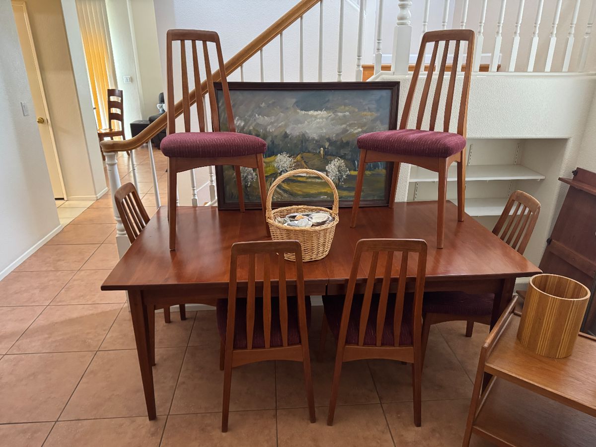** NOTE: Gated Community please follow directions at gate!!!** Front room: Mid Century Dining Table & Chairs 70’s Mod Floor lamp Mid Century Curio Crystal Mission style buffet Den/kitchen: Mid Century Coffee table MCM Side table & margarine racks Bose speakers Flat screen tv & surround system Leather sofas Totaling pottery Samsung Side by side fridge Garage: antique dining table Books Christmas/ Holiday decor Bikes Camping gear Upstairs: Maytag Washer Whirlpool Dryer Bunk Bed Schwinn Stationary Bike Weirder weight bench Workout equipment MCM Desk Books Electronics Linen Men’s & women’s clothing Bathroom item