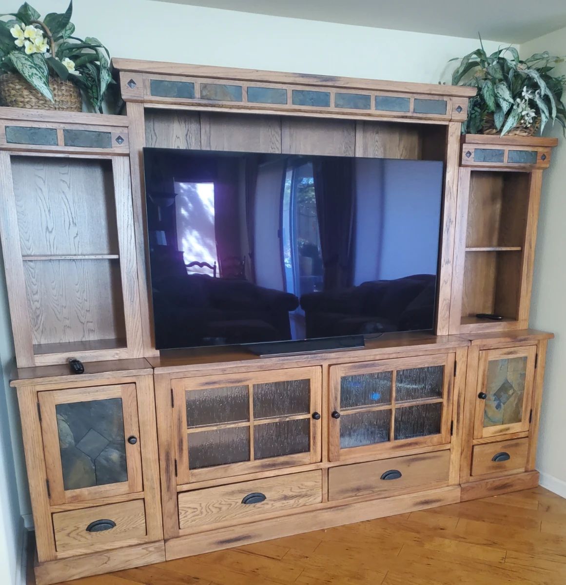 65" Smart OLED 4K Ultra HD TV, Large beautiful entertainment center, Antique curio cabinet, Antique 3 drawer dresser and matching full size bed frame, 2 White wicker nightstands, Tempur-Pedic Tempur-Ergo Full size adjustable bed, Oak full wall unit headboard with built in drawers and lights, Oak office set up with several desk and Oak bookcase, Beautiful Antique dinning table, Antique Ladder back chairs, French antique sideboard with marble top, Bassett Round glass top kitchen table with 4 chairs, 4 Piece patio set, Patio table and chairs, Bronze Dolphin Sculpture on a marble base, Bose Music system III with Cd player,...