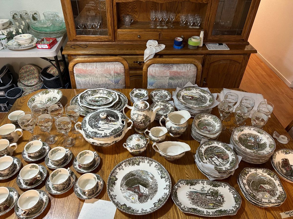 This estate sale consists of lots garden decorations, tools, and furniture. Also old sewing machine, Kate Spade purses, Bally slot machine several toys from the 80s. Charlie Brown and Strawberry shortcake lunchboxes. Variety of glassware purple, blue, clear, pink, and crystal. Vintage clothing, sears sewing machine, JOHNSON Bros, friendly village, China set Havlinand Limoges China. Also have vintage 80s games, beautiful furniture, CDs DVDs, records, new clothing, and shoes lots of Christmas vintage Halloween ghost mold and a lot of fall decor. We have gold and silver jewelry, costume jewelry, vintage dolls, and a ton more. This sale has high...