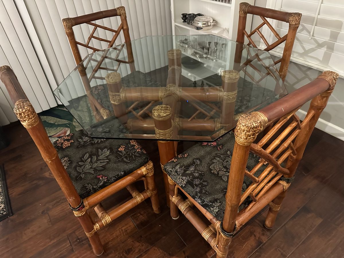 Inherited treasures from a great uncle and a lifetime of collecting for this couple. Lovely, Vintage Oak Armoire. Nice White Sofa- Like New. Pair of Cloth and Wicker White Chairs. Vintage Green Steamer Trunk. Rattan Table and Chairs. Oak Mantle Clock. Fine Old Ship’s Clock. Vintage Oak Dining Table and Chairs. White Display Cabinet. Beds: King and Twin. Dressers. Nightstands. Black Sofa and Matching Chair. Flatscreen TV. Antique Bible. Books: Lucky Bag Naval Academy Books and Yearbooks. Holiday. Copper. Nice Collection of Silver & Silver Plate. Clothing: Men’s and Women’s. Jewelry. Patio Chairs. Chaise Lounge. Garden Items. Fabric and Patterns....