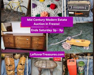 Dec. 6 - Mid Century Modern Estate Auction in SE Fresno. 374 Lots. Ends Saturday 3p to 9p. Pick up S