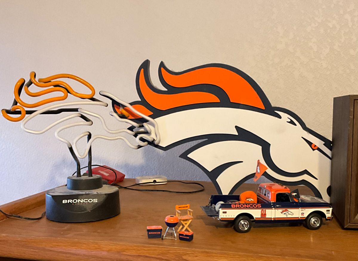 Denver Broncos memorabilia Danbury mint Broncos truck Die cast motorcycle Vintage radio Vintage Panasonic RF-2200 8 band potable radio Vintage Mountain Dew sign Broncos collectors footballs coins electronics MCM Swedish Bruno Mathsson The Body chair Xfinity speakers Kef K speakers leather jacket Harley Davidson shirts cowboy boots belt buckles vintage clothing dog crates Buddha crystal reloader china hutch oil lamp china cut to clear glasses vintage furniture Sony playstation Apple desktops Homco porcelain figurines Bull Dog collectibles bull dog phone pipes pipe holders watches Hallmark ornaments wheel chair Tea set vintage Broncos sweater afghan blankets rocking chair desk appliances hose...