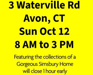 Very High End Estate Sale Avon CT Oct 10 to 12 Rt 10 + 44