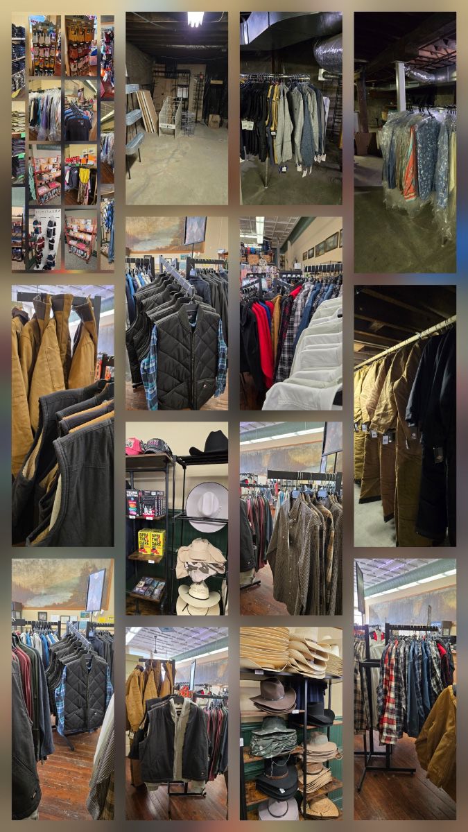 Men’s and women’s Workwear, Dickies, hats, boots, brand new clothes store closing