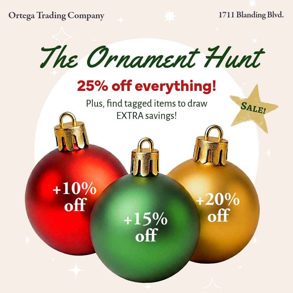 Ortega Trading Company's Warehouse is Open: 25% Off Holiday Sale