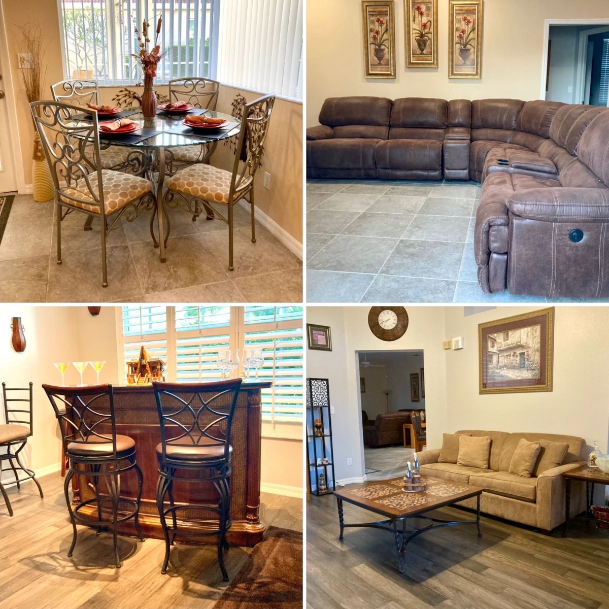 Fantastic, upscale area of Sun City Center is the setting for our next sale. Full of easy Florida lifestyle furnishings. We even have a Gas Yamaha Ohio State Buckeyes themed Golf Cart! Large leather L shaped reclining sofa, Bar with storage. Bar Stools, High Top Bistro set, Dining set., 5 TV’s!!, Oak King Bedroom set, Curio cabinets., Adjustable base twin beds., Exercise bike., Patio and lanai furniture., Golf, Florida and Americana décor items., Extensive kitchen selection., Safe., Seasonal décor., 2 bikes., Garage is full of tools & garden implements., So much more to see! Great sale!!,
