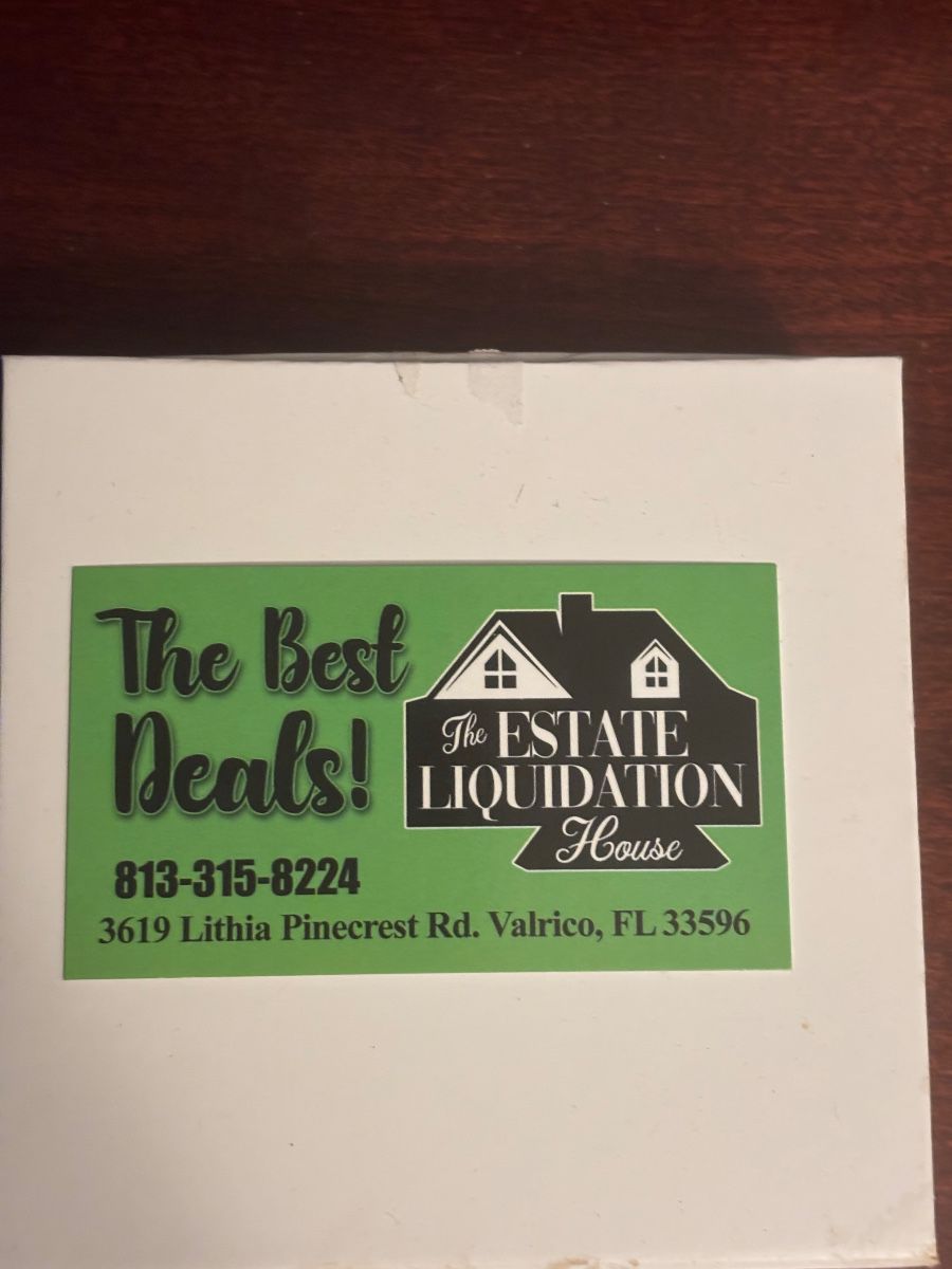 Huge Estate Liquidation Sale lots of estate leftovers , everything 50-75% off make offers.We do estate clean outs and liquidate at 3619 Lithia Pinecrest rd Valrico tons of inventory art , antique and vintage furniture , china sets , tools , pictures , electronics , home goods , lawn and garden , kitchen items , dish sets holiday tools, albums , toys too much to mention .Come by and check us out