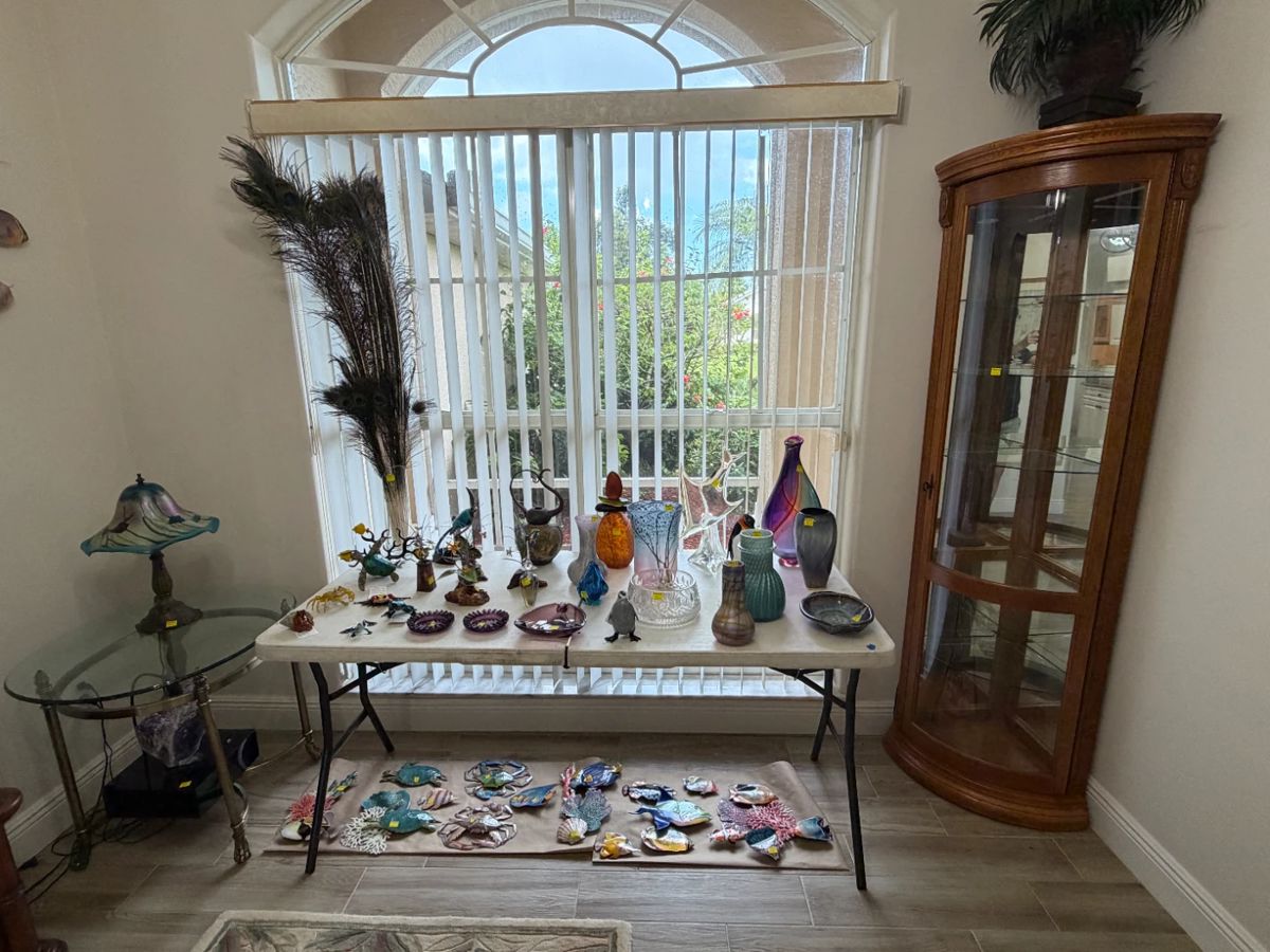 By Appointment only, High end glass, collectibles and more. Some of the artist pieces include Brian Arthur, Chris Barela, Tim Cotterill (Frogman), Waterford, Bovana, signed paperweights, Andrea Sadek, Lenox, Crystal/Minerals/Fossils, Pfaltzgraff, Art, Carvings, Like new furniture, 2 King Bedroom sets, Dining Set, Round Table set, Leather sofa and recliner, Office furniture, Treadmill, as so much more. Gated Community in Vero Beach. Call Stacy for appointment 631-566-0259. Appointments are on a first call first come basis. I will give you the first available, unfortunately I will not squeeze people in.
