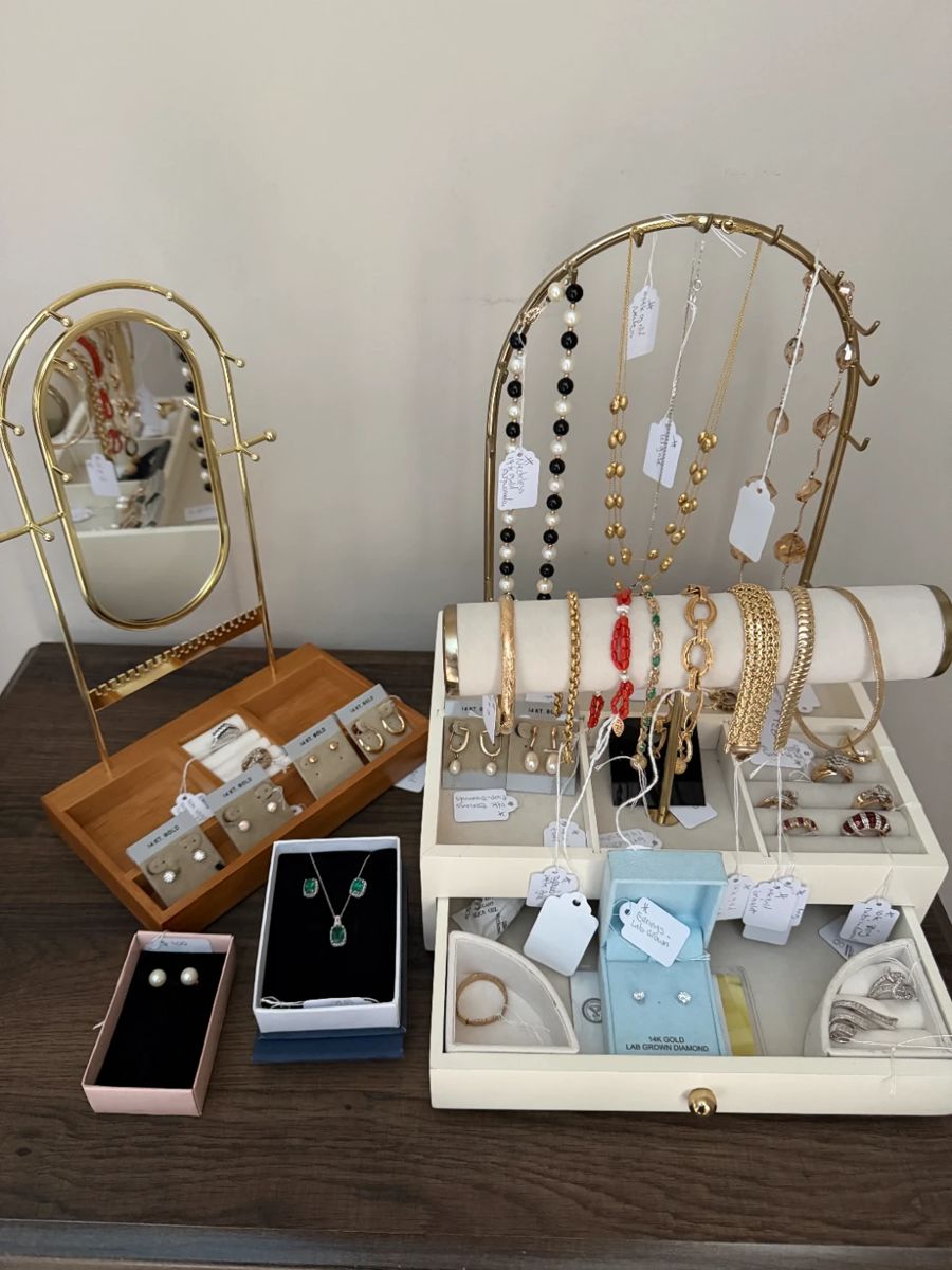 Large selection of designer handbags (Chanel, Gucci, YSL, …), fine Gold & silver jewelry, lab-made diamonds, floor & table lamps, fine rugs, home decor, light fixtures, strollers, car seat, bassinet, shoes– much more…