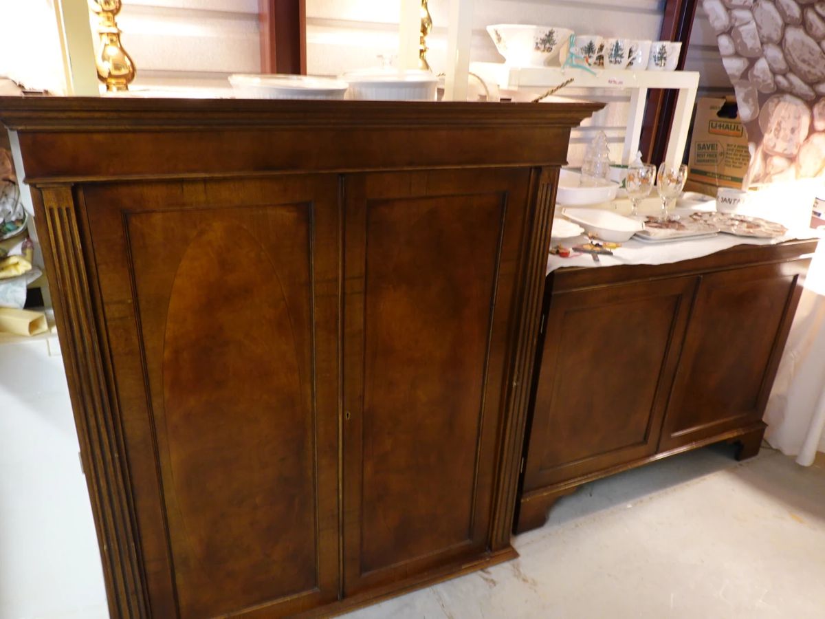 Estate sale with multiple houses of goods. Antique furniture and decorations Oak pedestal table, Victorian washstand, Custom-made mahogany armoire, Queen sleigh bed, blond country French dining suite, mirrors, cushion chair and ottoman, sofa, side chairs, stylish artworks, various table lamps and lighting fixtures, fireplace fender and andirons, raised marble sink, ceiling fan, exercise equipment, wedding items Antique quilts, comforters and bedspreads, and linens, William Sonoma and Holiday China, glassware Costume Jewelry, Holiday decorations, housewares, Clothing, Books, CDs, Records, Tools