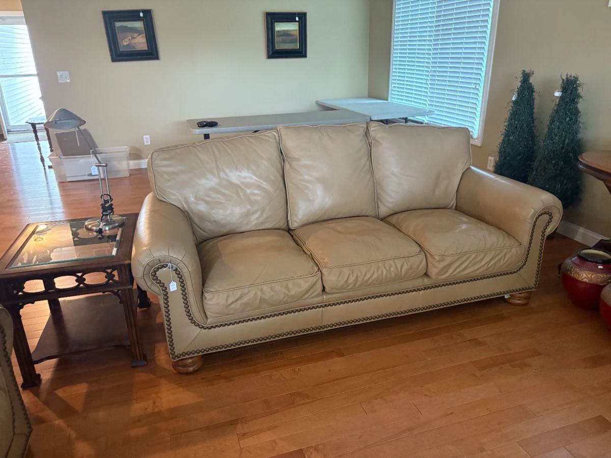 This is a condo full of very nice, clean, furniture and collectibles, leather couches, leather loveseats and chairs, beautiful dining room table and chairs, heavy woven wicker chairs and couch, antique walnut table, oak antique parlor table, Pfaltzgraff china, plants, white Mikasa china, kitchen items, pots and pans, set silver plated dinnerware, washer and dryer, artwork, Weber grill, porch rockers, coatrack, lamps, glassware, pottery pieces, Isabel Blooms, shredder, clothes, shoes, purses, Longaberger, suitcases, dehumidifiers, Kincade dresser, highboy, and 4 poster bed, linens, cosmetics, roll top desk, large Christmas tree, set stacking tables, Mission style table, chairs, & buffet, exercise equipment,...