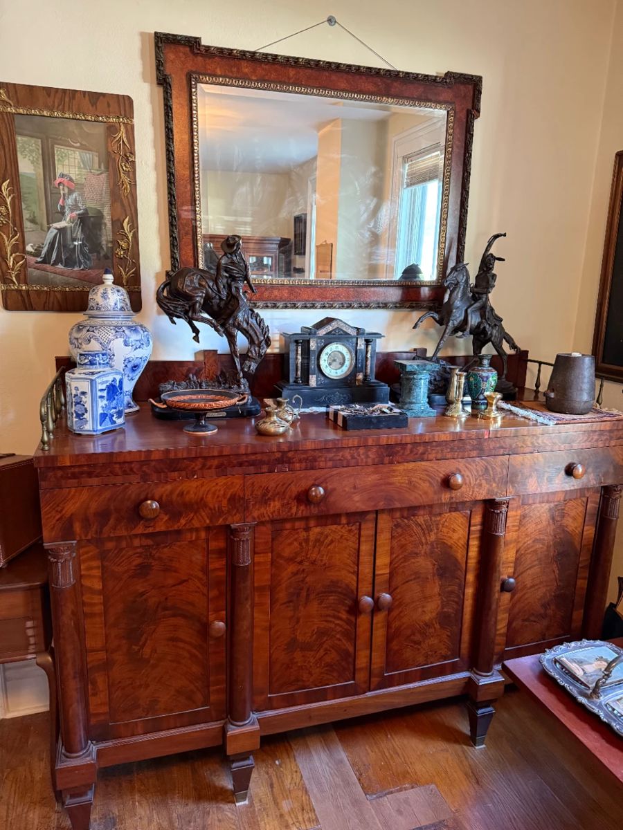 Artifacts is extremely honored to be doing the sale for the estate of Marlin Ingalls. Being an historian, Marlin filled his home with a lovely collection of antique art and furniture befitting an historic home. FURNITURE Antiques galore! Cupboards, sideboard, dressers, drop-leaf tables, settees, chairs, side tables, rugs, trunks and lawn furniture. ART All original art! Two Remington bronze sculptures, Japanese woodblock prints, antique oil paintings, prints and many paintings by Marlin himself. Stop back for updates and descriptions. GENERAL ITEMS Kitchen full of items including small appliances, cookware, sets of dishes, bar ware, utensils, linens, large screen television, garage...