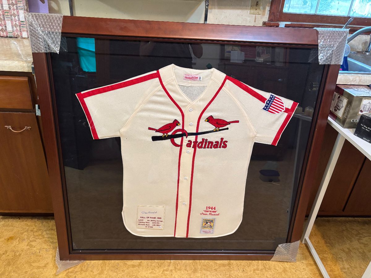 Signed Stan Musial Cardinals Jersey, Limited Edition Louisville Slugger Baseball Bat, Antique Wooden Bed Frame, Christmas Light Displays, Wire Hangers, Washer, Dryer, Cleaning Supplies, Tall Dresser, Oil Lamp, Puzzle Artwork, Laundry Supplies, New In Box Stoneware Dishes, Pots & Pans (Used & New), New In Box Hamilton Beach Toaster Oven, New In Box Glassware, New In Box Christmas Decor, AnchorGlass Forest Green Beverage Set NEW 7 Piece Set, Vintage Christmas Ornaments, Lenox Ornaments, Long Dresser W/ Mirror, German Wooden Display, Silverware, Utensils, China Set, Vintage Glassware, Pyrex Bowls, Steins - Budweiser & Misc, Corning Ware, Sewing Machine, Musical Instruments, Mattress...