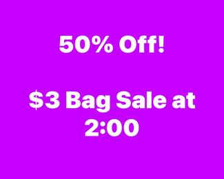 HALF PRICE SATURDAY! Bag sale 10-noon!!!