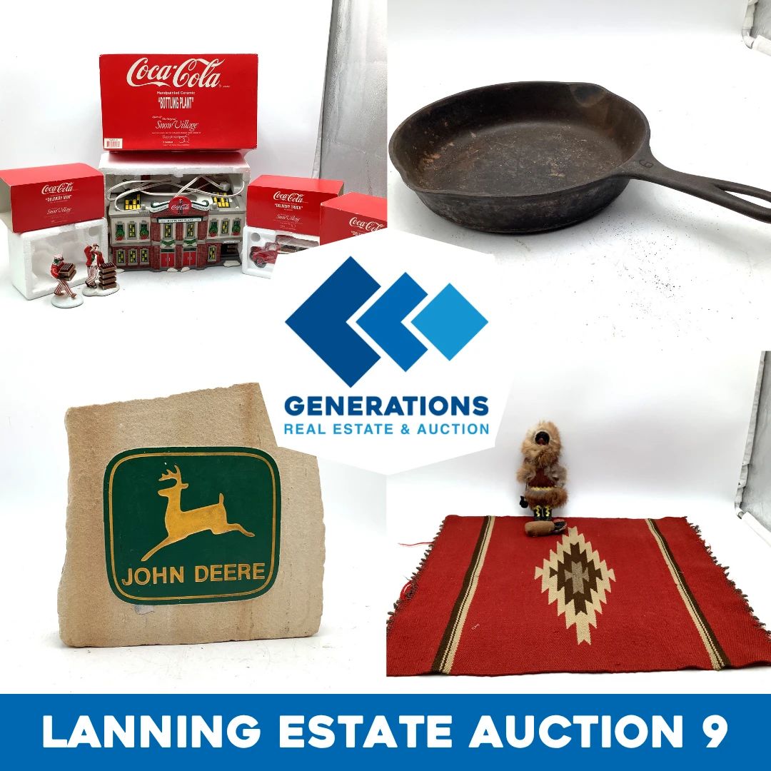 The Lanning Estate Auction 9 - Salina, KS Celebrate nostalgia and holiday cheer with this festive auction filled with timeless collectibles and vintage treasures. From Christmas décor and classic toys to charming home accents, there’s something here to delight every collector and season enthusiast. Wide Variety of Christmas Decor, Lenox, Department 56 Snow Village, Coca Cola, John Deere, Shiney Brite, Hand Blown Ornaments, Holiday Items, Vintage Toys & Dolls, Barbie, Cabbage Patch, Fisher Price, ERTL, Tyco & Lionel Trains, Vintage Books, Glassware, Porcelain, Pottery, Stoneware, Cast Iron, Enamel, Brass, Fenton, McCoy, Primitives, Beer Signs, Collectible Glasses, MCM, Quilts, Linens &...
