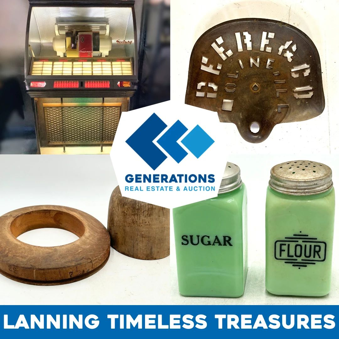 The Lanning Timeless Treasures Auction - Salina, KS Step into a time capsule of vintage charm and everyday history—an eclectic auction packed with character, nostalgia, and unexpected finds. From farmhouse roots to mid-century flair, this collection reflects decades of collecting, crafting, and classic Americana. MCM, Lighting, Framed Art, Oil Lamps, Glassware, Ceramic, Porcelain, Silverplate, Cast Iron, Pottery, Fire King, Roseville, Uranium Glass, Primitives, Vintage Hats, Antique Hat Molds/Forms, Linens, Quilts, Sewing Notions & Fabric, WWII Clothing & Items, Vintage Books, Vinyl, Vintage Postcards & Photographs, Brunswick Pool Table, Seeburg Jukebox, Pub Lights, Vintage Toys, Marx, ERTL, Road Signs, John Deere...