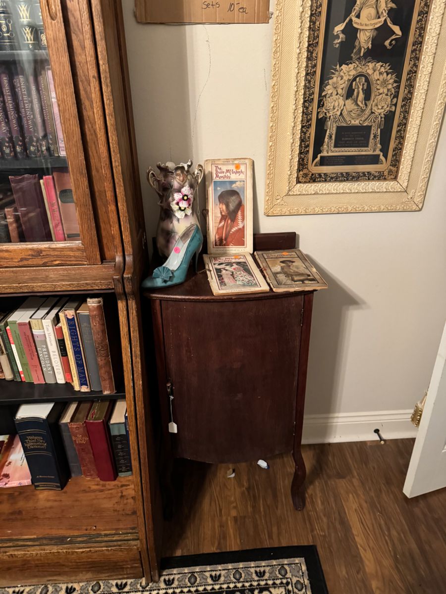 Jeanne owned some antique stores in Lake Charles for a number of years. Items include: antique furniture, kitchen ware, washer/dryer, electric piano, vintage surveyor’s box, art glass, revolving bookcase, cobalt blue, butter dishes, Weiman Germany glass, pyrex mixing bowls, Demi cups and saucers, Marshall pottery, 20-gallon pickle barrel, Swedish Crystal, depression glass, Fitzpatrick & Floyd, records, art, sheet music cabinet, cedar chest, Luster glass, 1900’s German wardrobe, Russian flatware, tiller, lawn mower, gas grill, garden carts, bird baths,