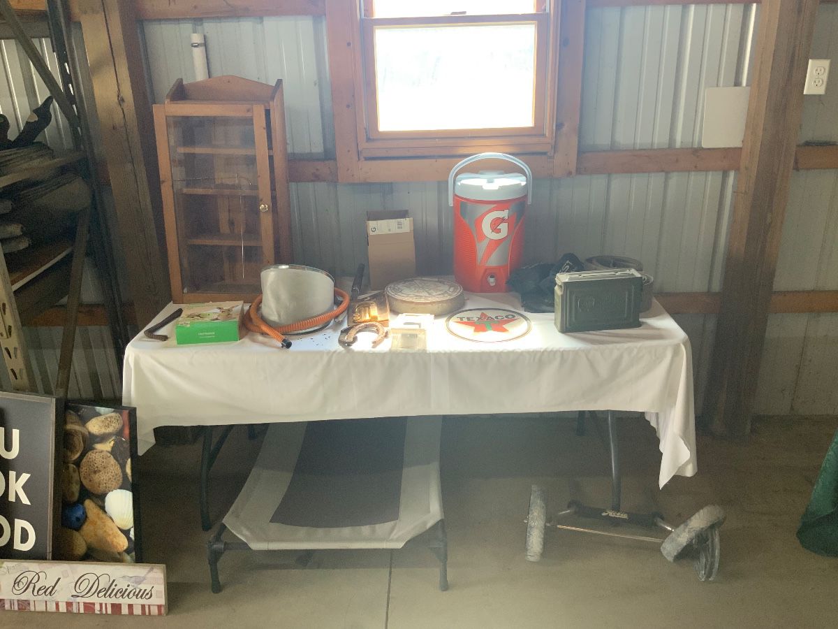 Pontoon Boat, Fishing Boat, Snowmobile, 4Wheeler ramp, Ladders, Doors, Shelves, MCM dishes, China, Cow Creamers, Home decor, Hunting, Fishing, Camping, Skiing, Clothes, Shoes, Smoker, Weed eater