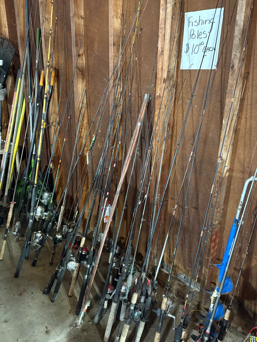 Sun Dolphin trolling boat Rogue River Canoe Aluminum Row Boat Hunting- Camo jackets, shirts, pants, boots, a child’s bow, blinds. Chairs, scents. Bullets, deer feeder and lots and lots of other items duck hunting decoys. Sled, blinds and more fishing- lots of poles. Some tackle. Tackle holders. Brand new fly fishing pole, And more Rubbermaid gold clubs Tools- drywall lift - gas cans- brand new floor jacks furniture- dressers, kitchen table, loveseat, roll top desk. Tv stand, end tables, lamps, card table and chairs, twin bed and mattress, bookcase and more Knick knacks, dvd, vhs, books, legos and more kitchen...