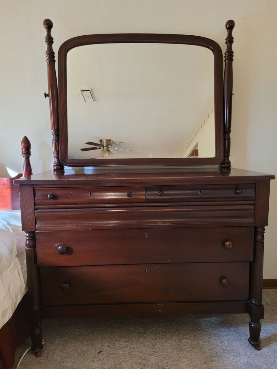 80 PLUS YEAR ACCUMULATION!! HOUSE AND GARAGE FULL OF VINTAGE FURNITURE: BEAUTIFUL 1940' MAHOGONY BEDROOM SET, ART DECO CEDAR TRUNK, 1940' LEATHER GLASS TOP DRUM END TABLES, VINTAGE OCCASSIONAL TABLES, OAK DINING SET. VINTAGE GLASS DISPLAY CABINET, BRAND NEW TAUPE SLEEPER SOFA, GRAY VELVET LOVESEAT, GLASS AND CRYSTAL, COSTUME JEWELRY, TONS OF KITCHENALIA, LINENS, XMAS, PORTABLE BAR, VINTAGE LIBRARY TABLE. ANOTHER GREAT SALE HOPE TO SEE YOU THERE!