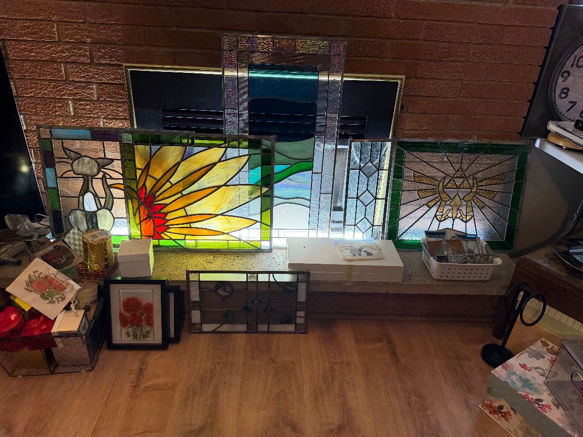 The Eclectic Cupboard is pleased to present an estate sale for Cecelia Boggio and Tom Cavil of Rochester MN. Cecilia and Tom are moving and need to rehome all of the furnishings and collections, crafts and necessities that they have acquired. Cecilia is an artist specializing in fused glass, creating jewelry, décor, ornaments, bowls, and all manner of fun items. Toms interest lies in music, guitars, electronics, and tools. Eclectic Cupboard is honored to serve Cecelia and Tom. OF SPEC IAL INTEREST: Fused glass making supplies, stained glass pieces, guitars-Les Paul Gibson, Fender Millennial Stratocaster, Fender USA mahogany Stratocaster; Randall...