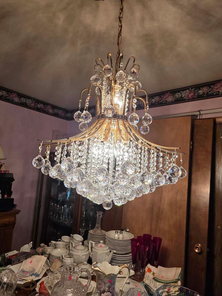 Items of Interest Two Swarovski crystal chandeliers – solid brass, 24-carat gold finish, 11-light design, Crystal Hallway Chandelier, Tiffany Style Hanging Chandelier, Colonial Molyneux Grandfather Clock, Lighted Cherry wood display cabinets, Burberry purse and Burberry women’s trench coat, Costume jewelry, Swarovski figurines, R.B. Rice Chalk Pig, 2 Large Crocks…1 is repaired, Cheetah-print chaise lounge and leopard-print décor, Bose Acoustic Wave music system, Bose cube speakers, Bose surround-sound components, Vintage Carhartt vest and Harley-Davidson clothing collection, COOGI Sweaters, Saks Fifth Avenue women’s clothes, clothes, and more clothes, Kansas City Chiefs Hats, Women’s Shoes, Japanese three-panel wall hanging, Waterford crystal and other...