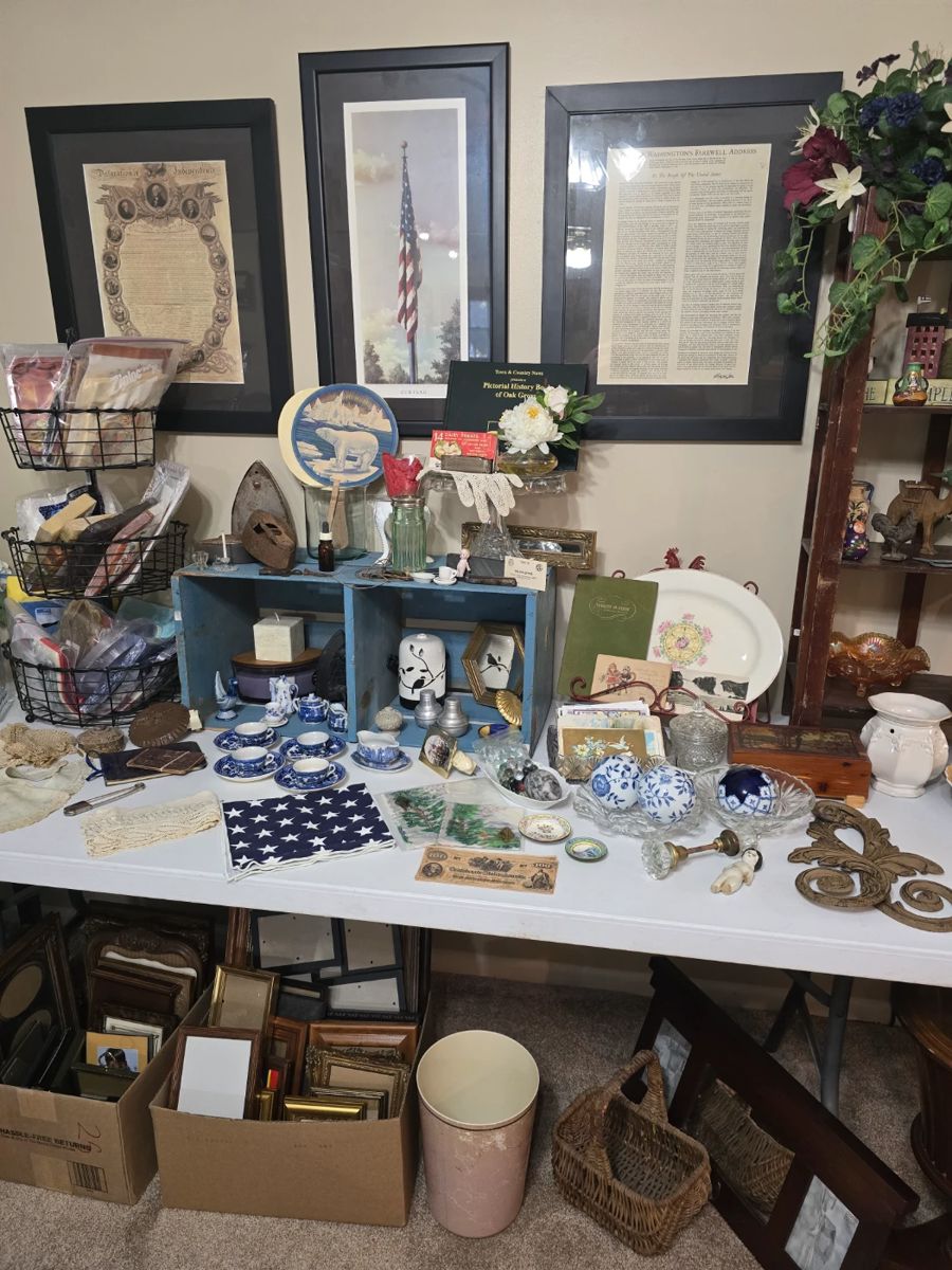 Nice clean house with great collectables and standard house hold items. Cash or check with ID. Dolly provided. Must bring help to move large items. 2009 Ford Mercury Sable Premier. White 4 door car. 89 thousand miles. Buy it now price or leave a bid. 2pm sat if car hasn't been bought at the buy it now price the highest bidder will be called. Bid box is at the checkout table. Books from 1880s to new. Lots of holiday decor. Clean well cared for furniture. Barbara's late Husband made several pieces of furniture. They are solid oak. Dining table, side...