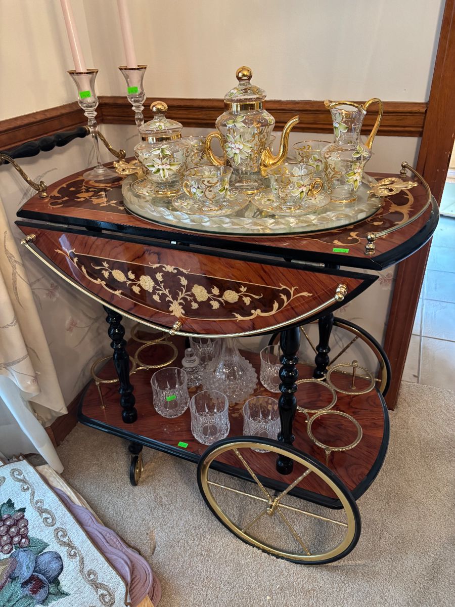 Hours: Thursday - 9am-4pm - Full Price Friday – 10am-5pm - 25% off Saturday – 9am-12:15pm – 50% off Saturday – 1pm-3pm – 75% off Some items may not be discounted Details: Glassware, crystal, China, vintage, collectibles, sterling flatware set, silver plate, brass Bernhardt Hibriten dining set with china cabinet, table, bar carts Books, cookbooks, tons of linens, mirrors, lots of religious art, decor, collectibles Art - local artists - Hamil - sculptures Century bedroom set - dresser with mirror, armoire, bed, bedside tables Dolls, DVDs, flat screen TVs, entertainment center, stereo equipment, CDs, games LOTS of clothes, shoes, hats,...