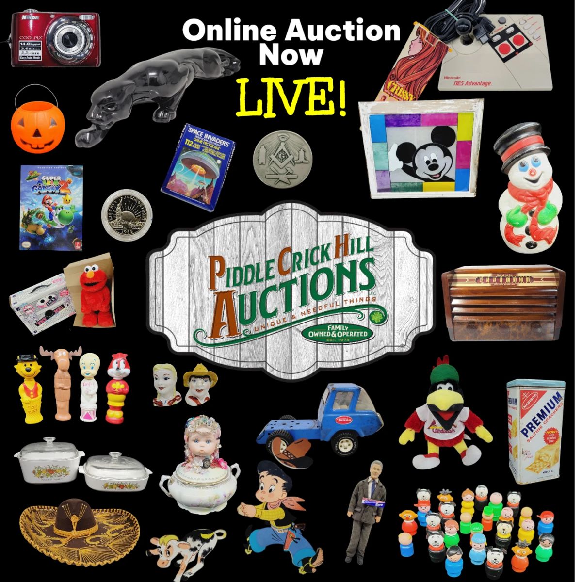 Step into a treasure trove of nostalgia, history, and one-of-a-kind finds in Volume 48 of Piddle Crick Hill Auctions! This sale brings together over 300 lots of antiques, collectibles, and pop culture favorites — from vintage Disney and Coca-Cola memorabilia to rare ceremonial swords and mid-century décor. Highlights include a 1970s Walt Disney World metal lunchbox, a Knights of Columbus early 20th-century ceremonial sword, a working Radiola wood tube radio, vintage blow mold holiday decorations, and a 500-card Magic:The Gathering lot, Vintage Pyrex and Corningwear & Comic Books. St. Louis history buffs will love the 1949 St. Louis GM Plant...