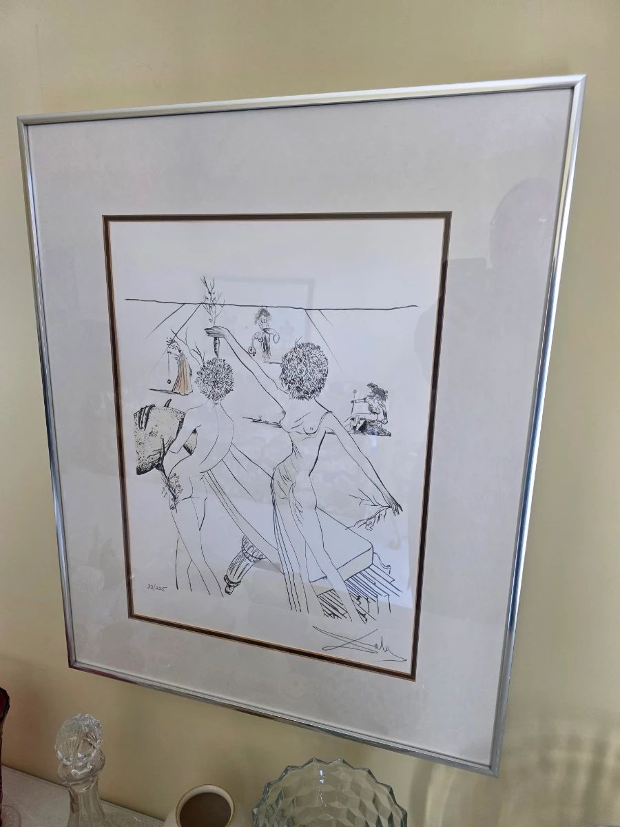Salvador dali painting, Raymond klee paintings, couch, recliner, chairs, dinning room set, bedroom sets, desk, washer, dryer, fridge, yard tools, pfalzgraph, Waterford, bells, China, curio cabinet, end tables