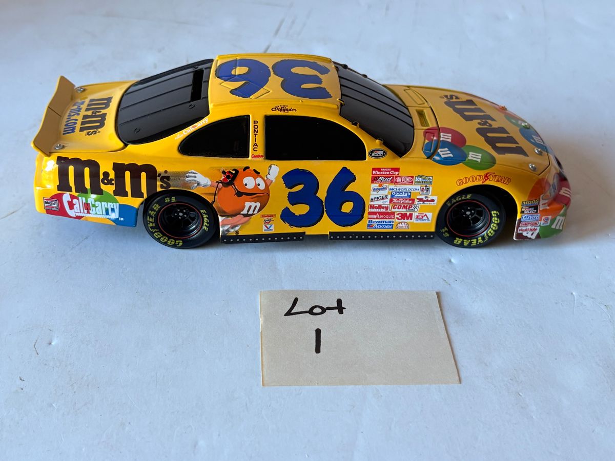 This auction features a huge assortment of NASCAR die-cast cars, vintage decanters, some rare and beautiful NC pottery and clay sculptures and some extraordinary full table lots. All of the NASCAR diecast cars, the original boxes. Everything in this auction starts at $5.00 per lot!!!!!