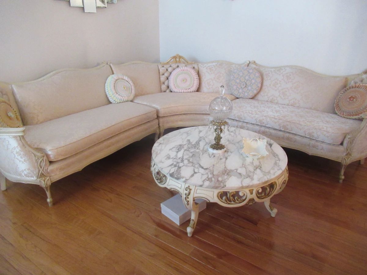 Argento 800 Sterling Silverware, Outdoor items, tools, Mid Century Modern Style Koronette Stereo Bar, and fireplace. French Provincial three piece sectional sofa, cocktail table with two matching end tables marble top. Lamps,artwork, mirrors, luggage, silverplate, Several Crystal pieces with brass Cherubs, and marble base. 3D Victorian style artwork, china cabinet with two side table chairs, cocktail table with one matching end table, hanging Chandlier brass, and crystals. floral arrangments, custom made drapes, curtains, bedding, blankets, Samsunf flat screen t.v., t.v. stand folding chairs, small Mahogany china cabinet, and side board. Dining table, two leafs, six chairs, leather recliner sofa's with...