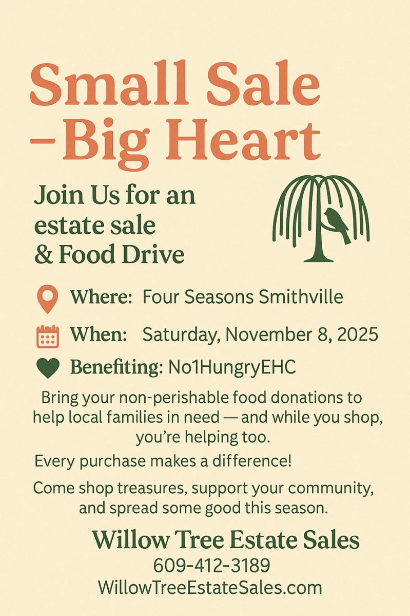 The address for this sale in Smithville, NJ 08205 will be available after 9:00am on Friday, November 7th, 2025. Dates