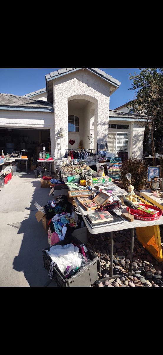Antique items, plants, jewelry, permanents, knickknacks glassware, clothing, art, games, comics parts pans, corning, ware, fire king toys, dollhouse furniture, and dolls, coins, casino, memorabilia handbags shoes it’s too much to list over 35 tables for merchandise
