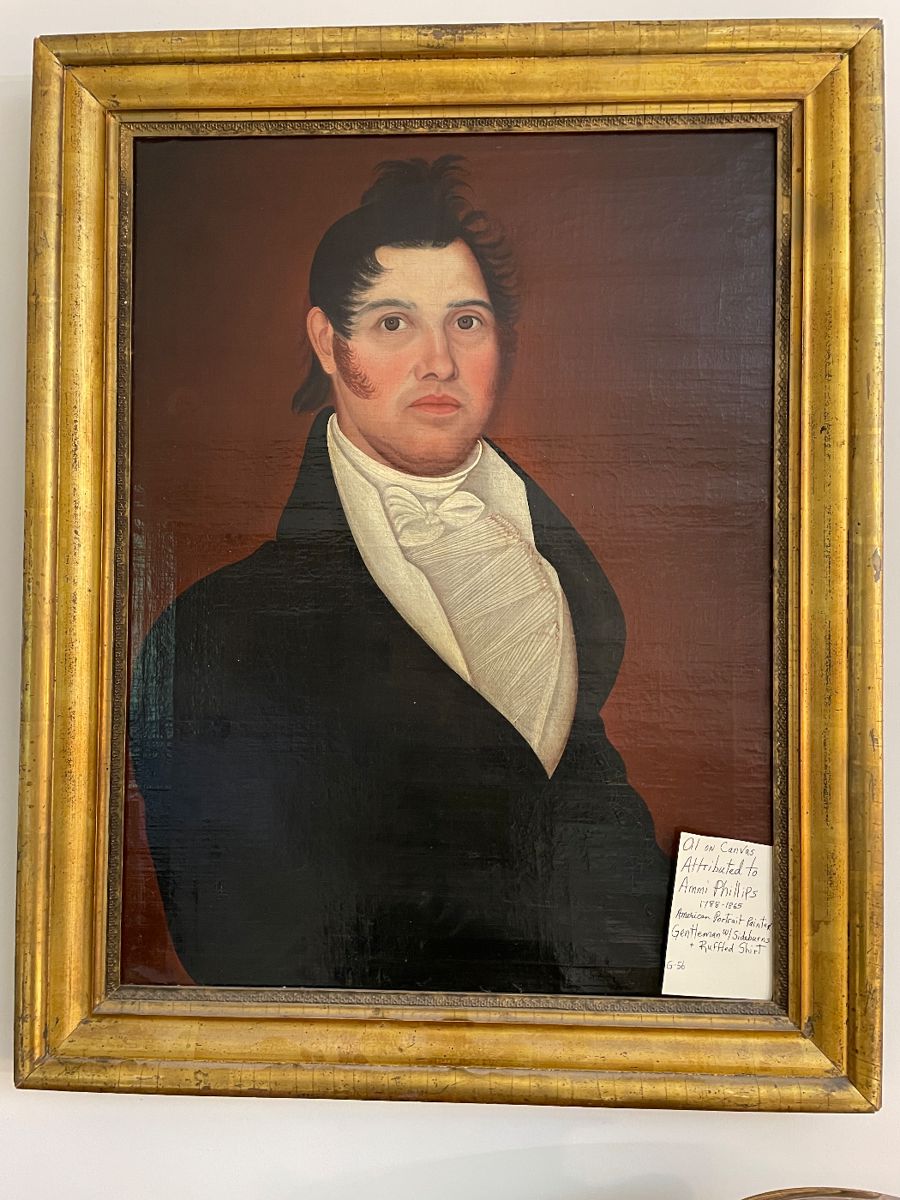 Fabulous Estate Sale contents of 18th C. Portraits, Artwork, Chinese Porcelain, Furniture, Sterling Silver, Sheffield Silver Plate, Jewelry, fine Books, full Household! some details....... * Wonderful 1812 Sampler * Oil on Canvas Painting of Gentleman w/ sideburns and ruffled collar attributed to Ammi Phillips * 18th C. Oil on Canvas Portraits -many of these in gilt frames * 18th C. Copper plate Etching "View of Eighteen Columns" and many other Etchings in Gilt Frames, colorized Lithographs, Engravings, Bookplates * Chinese Ancestral Portraits, Japanese Woodblocks, Prints * Sterling Silver individual serving pieces, Sheffield Silverplate Tea Pots and serving pieces * Queen...