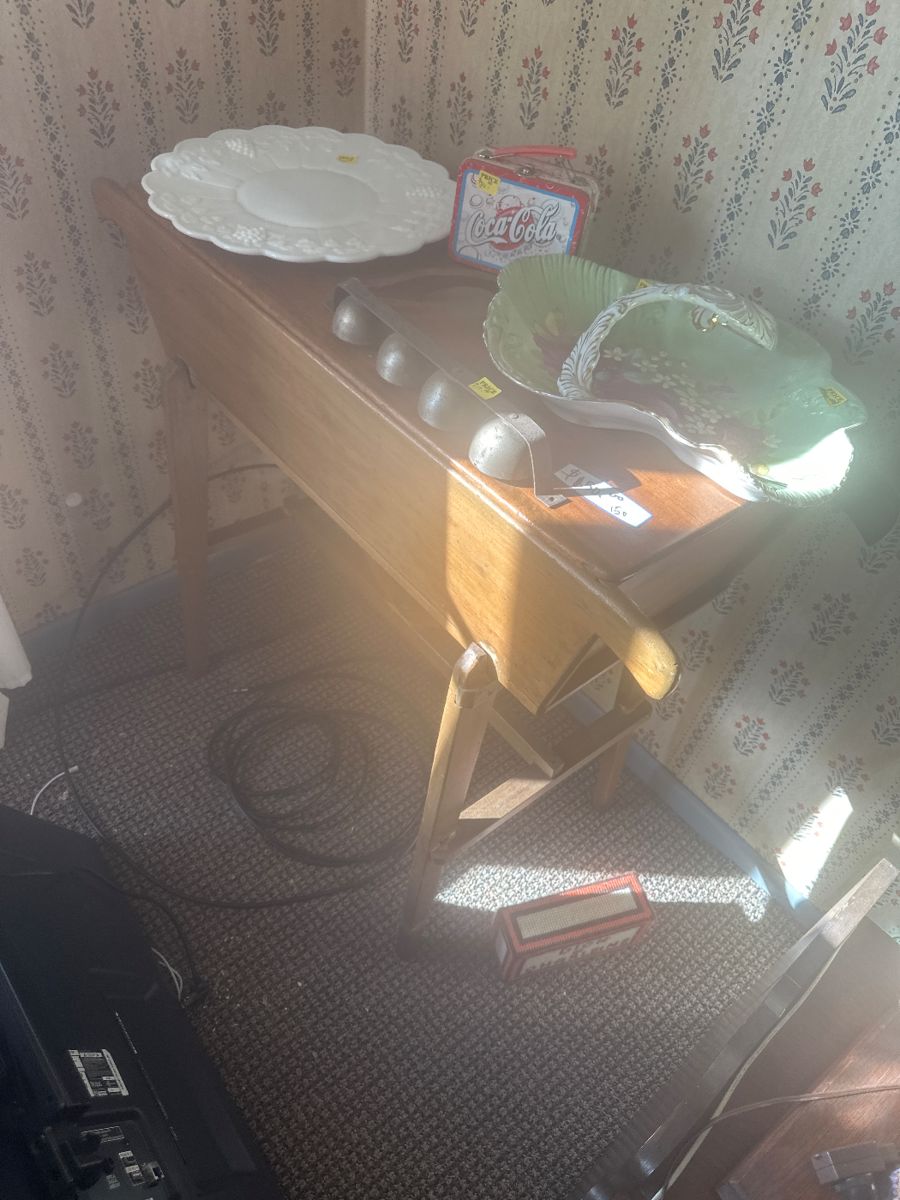 There are many antiques as well as household items. There is clothing and a room of collectibles for Christmas. Some tools are also available. Sewing machines are a plus as is a host of seldom used furniture.