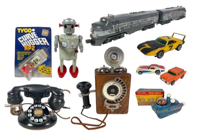 Antique and Vintage Toy Auction! Online Auction • 7PM • Wednesday, November 12, 2025 Bid Now! www.tomhallauctions.com Step back in time with an amazing lifetime collection of antique and vintage toys — plus a fascinating assortment of rotary telephones and rare service awards! 🔑 Highlights Include: AT&T 45-Year Service Award Jaeger-LeCoultre Atmos Clock Restored Hubley Keystone RR 6400 Cragstan Automatic Prop-Jet Sealed Boxes of NKOB Toys Lionel O Gauge Trains and Rolling Stock Lima HO Trains and Johann Distler HO Train Set Hubley Cast Iron Toys and Banks Tin Lithograph Wind-Up Toys Hot Wheels, Matchbox and Johnny Lightning Cars Lord...