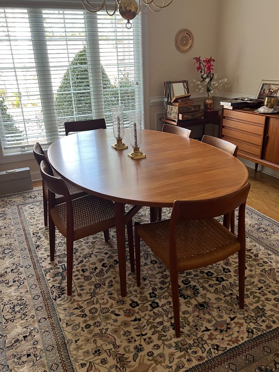 This sale is in the home of a former City Council member and both husband and wife were world ambassadors. They traveled throughout the world and have many interesting items for sale. 1970 Teal furniture by Sova dining table with two large leaves and pads., 8 chairs, buffet and china, stacking tables, small end tables and drop leaf desk. Wooden teak dresser and white small dresser. Set of outdoor patio furniture and iron table and chairs. Gas grill. Bird baths and planter. Round glass top rattan table and chairs. Wooden coffee table and wonderful end tables. Entry table, books and...