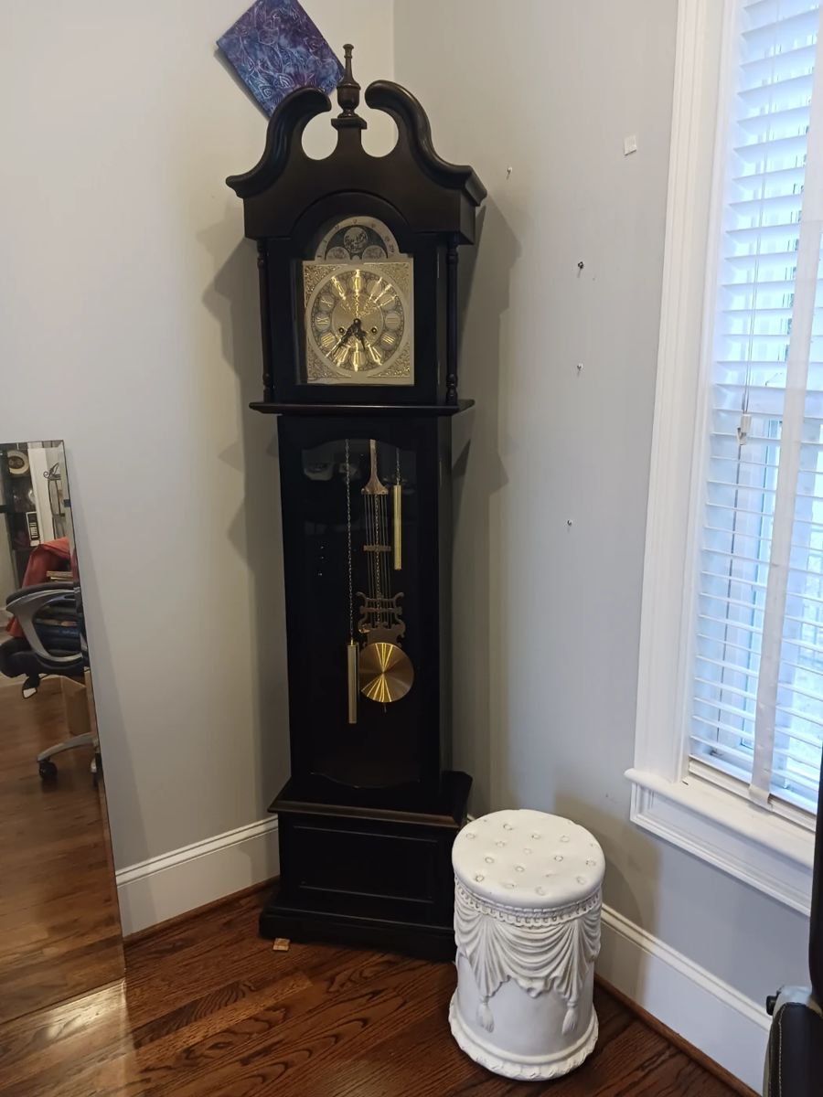 Furniture, Glassware, Useful kitchen items, books, prints, Mirrors, china cabinet dining table and chairs, desk,file cabinets, porch rockers, curio china cabinet, iron and metal tables, metal stand,grandfather clock, leather office chair, tvs,home decor figures and Glassware, occasional tables, breakfast table and chairs, hand crafted kitchen hutch, swivel bar chairs, full beds,chest of drawers, lots of men's and women's clothing, shoes and accessories, good selection of colorful art glass decor and more No appliances are available in this sale