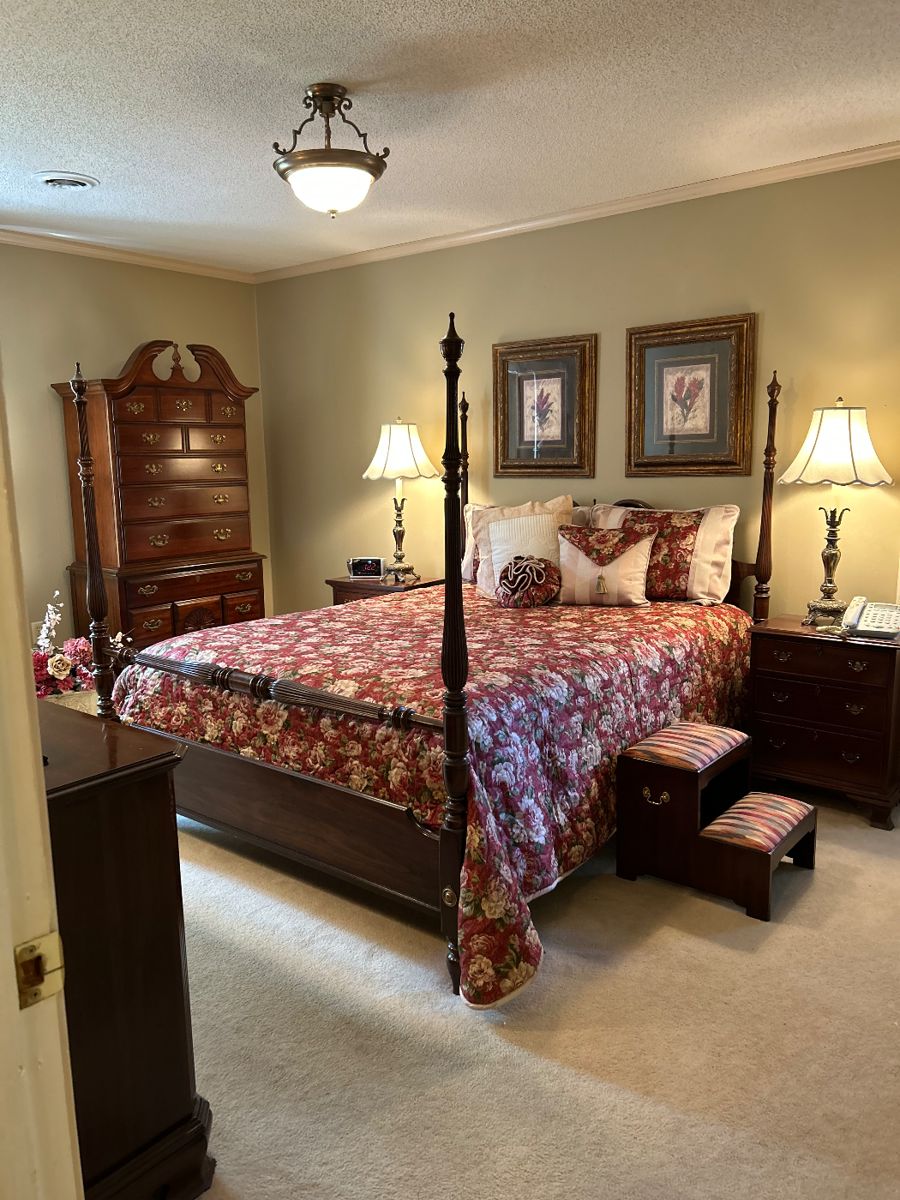 Blue and White collection, Queen bedroom set, Twin bedroom sets, Desk, Vintage crib, Exquisite Grand father clock, Duncan Phyfe Dining room table and 6 chairs, Wingback chairs, Black side tables, End tables, Over 30 lamps, Uranium items, Beautiful oil on canvases, Mark Roberts Santas, Very nice Mens clothes size large and extra large some NWT, Lots of Mens suits size 46 long 38 waist 32 length, Ladies suits size 10-12 and nice dress coats, Ladies shoes size 8, Linens, Jewelry, Vintage china, Silver plate, Frontgate Ornaments, Kitchen full of useful items, small appliances, Garage is packed, and there is a...
