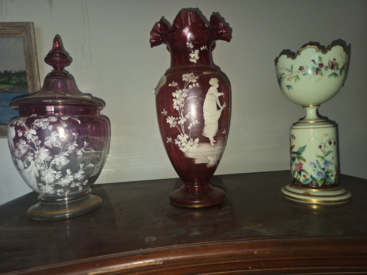 THIS HOUSE WAS BOUGHT BY ELVIS & GIFTED TO HIS FATHER, VERNON! See pictures of deed. King headboard & frame Dresser Chest Full headboard, footboard & frame Dresser Chest 2 Twin beds..headboard, footboard & frame Dresser Chest Trunks Vintage furniture Vintage toys Baby clothes Table linens Afghans Bedding Large tall vintage mirror Lots of glassware Ceramic christmas tree Vintage sets of glasses Corning ware Knick knacks Mary Gregory vases Vintage Uranium vase Player piano with lots of rolls of music Lots of Albums & 45s Vintage lamps, amber glass bubble lamp Blue paper weight lamps Drexel Dresser, Chest & night...