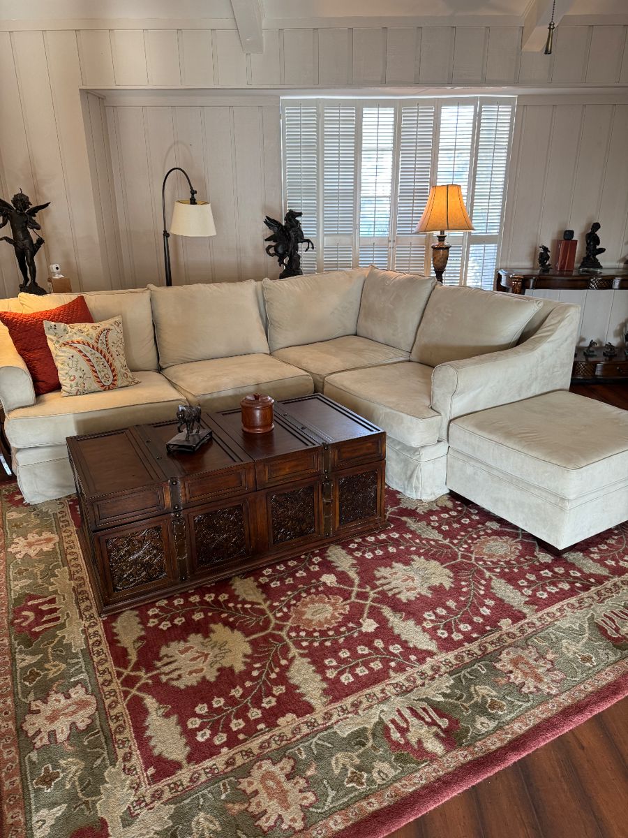 Happy Holidays! Our last sale for this year is a fantastic one! My clients father was a long time physician here in Corpus Christi. We have a collection of bronze statues, Marble Statues, Teak and More! We have a beautiful Thomasville Dining Table with 8 chairs and 2 leaves and a matching sideboard. Pottery Barn Cream Sectional Sofa Elegant Heritage Sofa and Loveseat Henredon Furniture Bookcases Baldwin Upright Piano & Bench Stone Figurines Silverplate Desert Rose Dinnerware Imperial China “Whitney” Curio Cabinets, Lamps Original Art and Prints Beautiful Silk and Wool Rugs Designer Clothing Mens Ties - Christian Dior, Burberry...