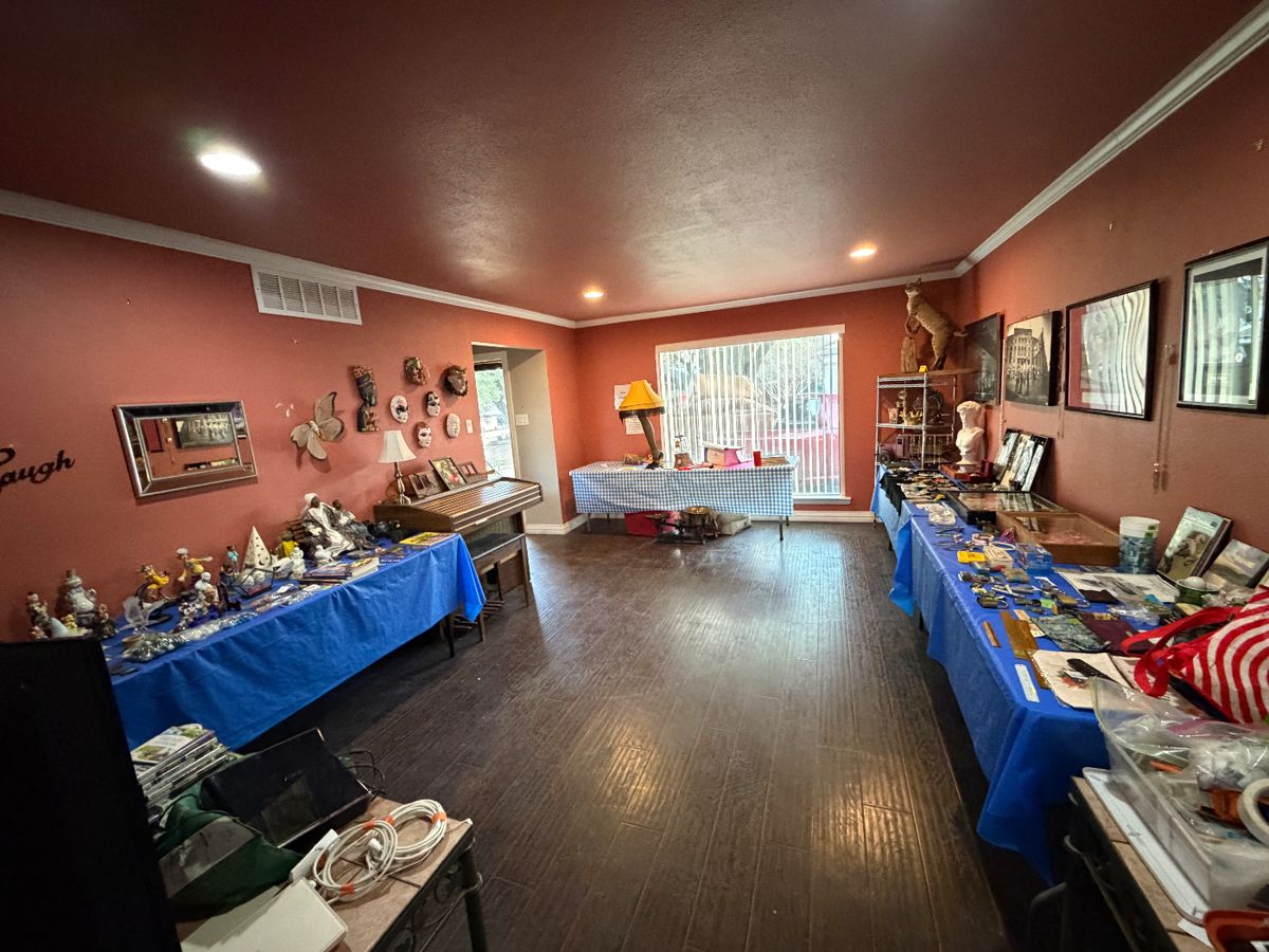 This sale has a lot of variety old, newer and collectibles. Furniture, lift bed, dresser, curio cabinet, chairs, rugs Jewelry, watches, necklaces, miscellaneous items Clowns, masks, pictures, games, American girl clothes, books, linens, lamps, decorative pillows, blankets and curtains, Christmas Dishes, cookware, wine glasses, silverware sets, southern living, baskets, TV, Xbox and games, inside antennas, iPad, computer, all types of cords for the phones and electronics Shark Vacuums, Rainbow Vac, Rumbas Some tools, storage containers, extension cords, flower pots, flags, dog crate, metal art, fountain