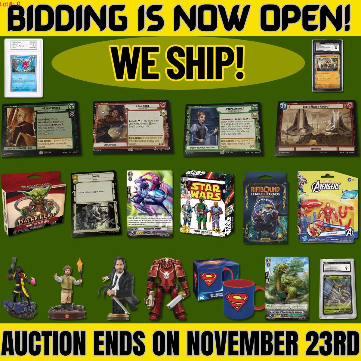Place your bids at https://garnetgazelle.hibid.com/ bidding is open now, but be quick because the items will start closing at 11 AM Central / 12 PM Eastern on Sunday. Check out our exclusive auction packed with collectible treasures like Sports Cards, Pokémon Cards, Action Figures, Funko Pops, Plushies, Lego Sets, Toys, and more! Each week, we feature a fresh selection of unique and exciting items that are sure to catch your eye. This auction is one you don't want to miss! If you have questions please email us at support@garnetgazelle.com Buy multiple items to maximize savings as we combine items for...