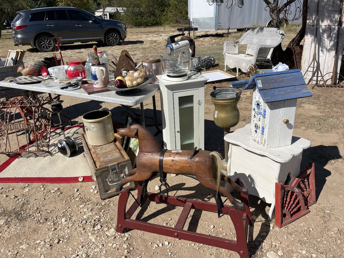 Antiques, primitives, tools, motorcycles, dirt bikes, deer feeders, beds, tables, fishing rods and lures, Christmas trees, clothes, jewelry, couches, lamps, propane heater, small children's table, motocross gear, linens, kitchen decor, 2 refrigerators, rustic tv stand..... really there's too much to list. You'll just have to see it. See y'all soon.