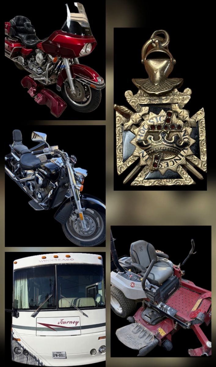 We have (and will continue to add) a huge variety of unique items at our warehouse blowout sale! Some of what we have includes: 1995 Harley Davidson Tour Glide Ultra Classic w/title, 2000 Winnebago Journey w/title, 2005 Honda VTX 1300R w/title, Hundreds of antique, modern & MCM furniture pieces, lamps, decor & collectibles, Large and small gun safes, tons of live ammo & reloading equipment/bullets, ammo boxes, scope, tons of tools, hand/power tools, generators, welder, yard tools, specialty plumbing & HVAC tools, machinists tools, woodworking & construction tools, toolboxes, ect., Lots of antique/vintage & modern knives, lots of vintage &...