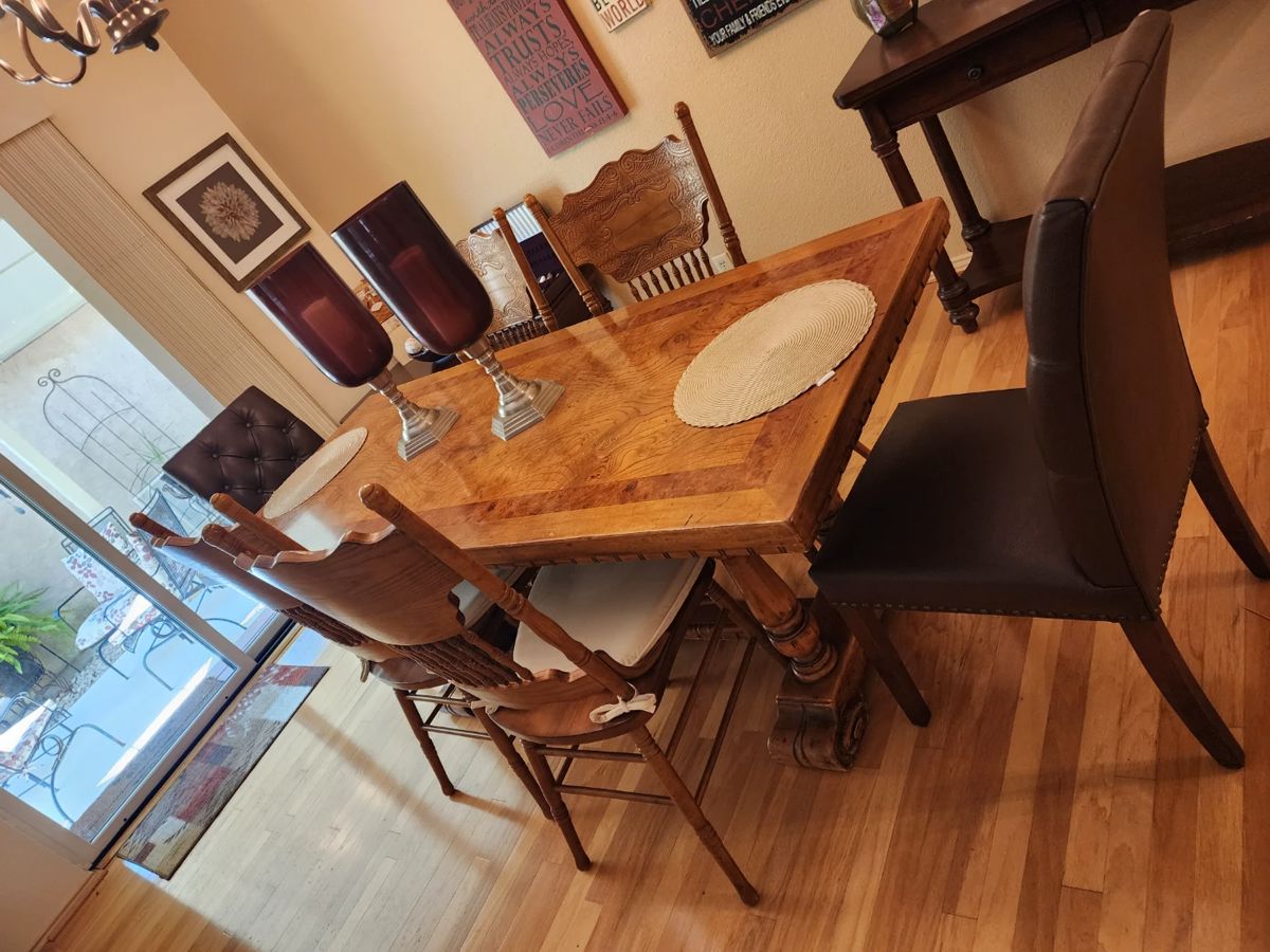 Dining table, chairs,