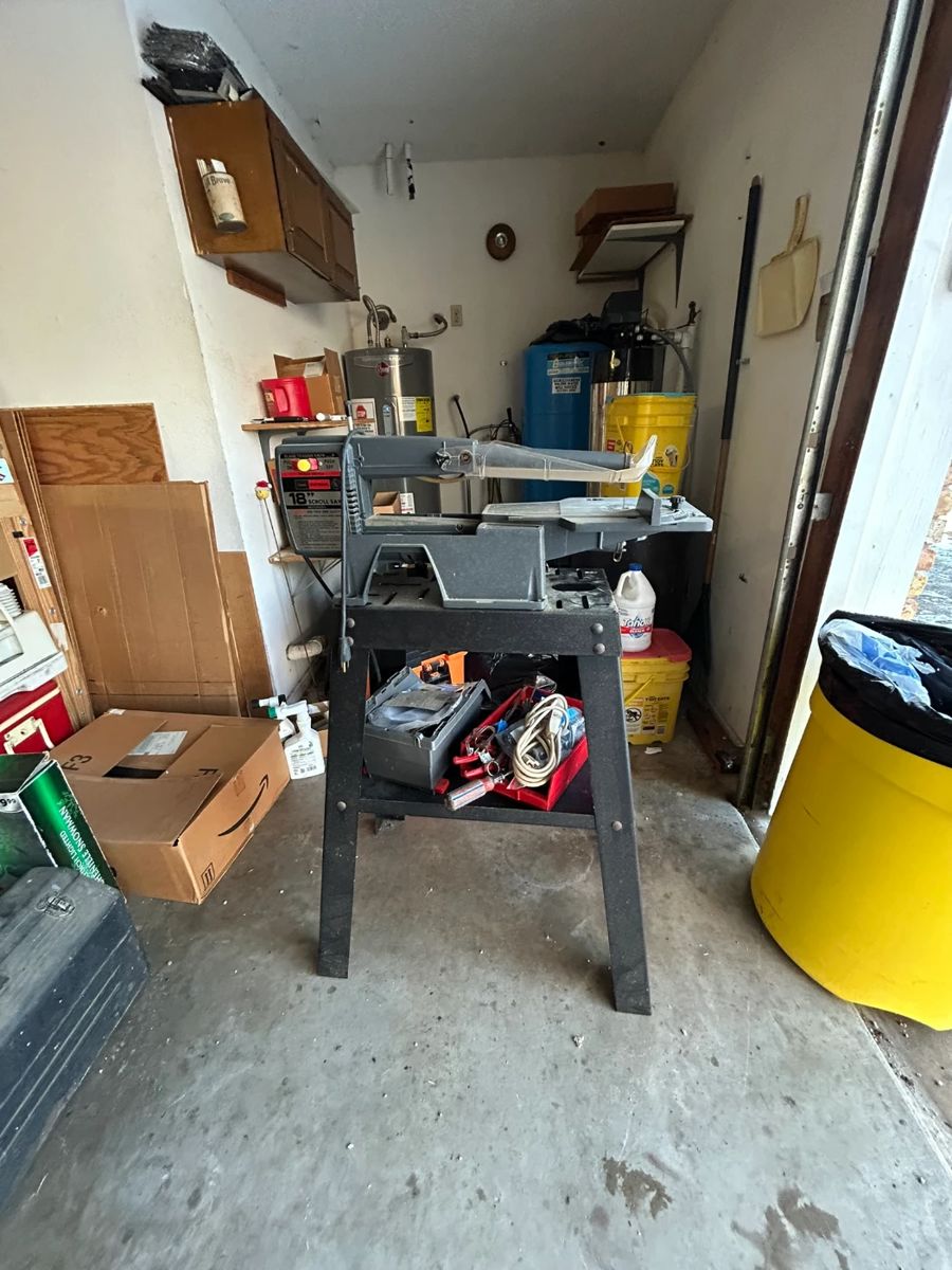 Please review our pictures. We will be adding pictures daily as we are still preparing. * hand tools, lawn furniture, chainsaw, lawnmower, weedeaters, yard tools, tool boxes * drill press, belt sander, scroll saw, drill, heat guns, Dremel tools, table saw * drafting and engineering calipers * model (RC) airplane parts, balsa wood for models, remote controls, * antiques, recliner, sleeper sofa, chairs, dining room table, hutch, computer desk, shelves, children's table and chairs, cedar chest * men's and ladies' clothes, including Cinch, Underarmor, Howler Brothers, Orvis, Columbia. Boots, Shoes, clothing by size forboth men and women small to 3x...