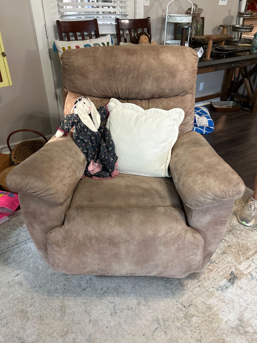 Recliner Oversized electric recliner Side chair Buffet table 2 Entry tables Rug Ottoman Settee Display cabinet Secretary desk Side tables Tall bar stools Pie safe Drop leaf tile top table with chairs Rocking chairs Coat racks Floor lamps TV trays Mirrors Stained glass 2 Office Desks Office Chair File cabinet Book case Dresser Regular bed with matching nightstand and dresser Chester drawer Night stand Stools Desk lamps Throw pillows Candles Microwave Toaster Kuerig coffee machine Air fryer Stand mixer Food processor Pots and pans Cast iron pans Dishes Glassware Tupperware Silverware China Home decor birdhouses Vintage spools Vintage books Vintage...